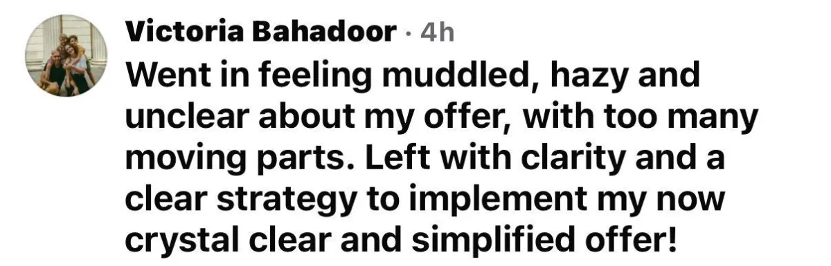 Everything shifted when I simplified. I got clear on my message, refined my offer, and built a simple pathway that actually worked. That clarity changed my entire trajectory.