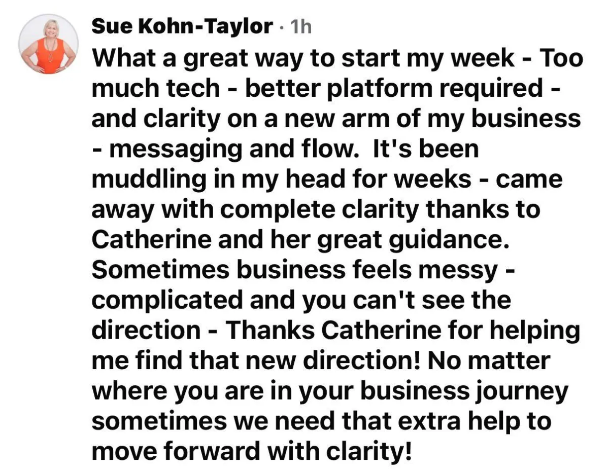 Get rid of the guesswork about what to do next. Walk away with a personalised clarity plan you can implement immediately.